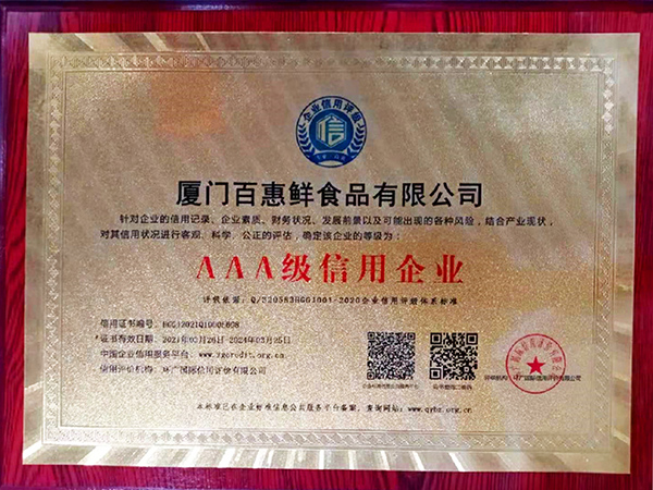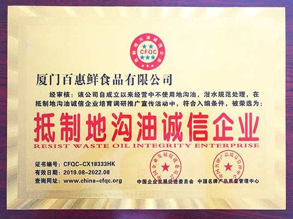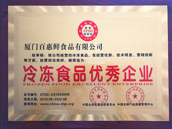冷凍食品優(yōu)秀企業(yè)黃牌