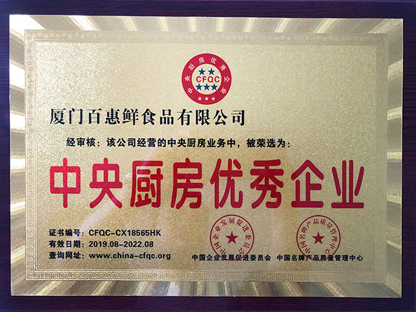 中央廚房優(yōu)秀企業(yè)(黃牌)