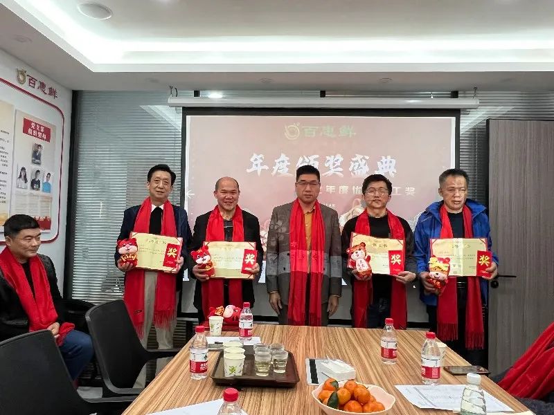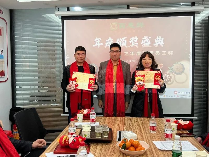 數(shù)年的堅守不渝,默默耕耘,你們把最美好的青春韶華賦予了我們?yōu)橹餐瑠^斗的事業(yè),數(shù)年與企業(yè)同風(fēng)雨,共命運,衷心的感謝你們,正是因為你們的付出,百惠鮮的今天才能如此絢麗!公司董事長王榮枝先生為忠誠功勛獎獲獎?wù)哳C獎。